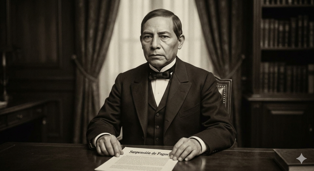 Ante la imposibilidad de pagar las deudas contraídas con potencias extranjeras, el presidente Benito Juárez decretó la suspensión de los pagos de la deuda externa por dos años. Esta decisión no sentó bien en Europa.